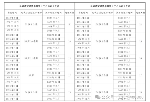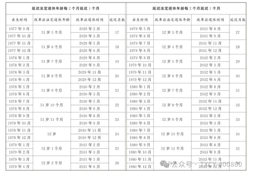 第一條?從2025年1月1日起,男職工和原法定退休年齡為五十五周歲的女職工,法定退休年齡每四個(gè)月延遲一個(gè)月,分別逐步延遲至六十三周歲和五十八周歲;原法定退休年齡為五十周歲的女職工,法定退休年齡每二個(gè)月延遲一個(gè)月,逐步延遲至五十五周歲。國家另有規(guī)定的,從其規(guī)定。