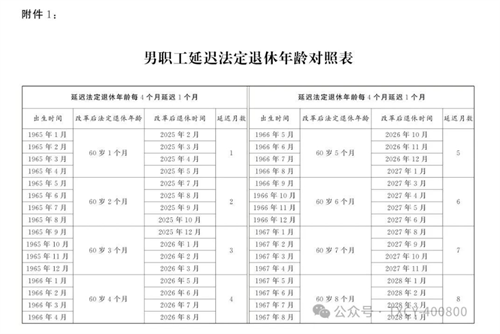 1.男職工延遲法定退休年齡對(duì)照表